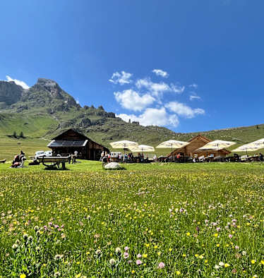 Die saften Almwiesen und die fantastische Sicht auf den Peitlerkofel laden nicht nur zum Wandern, sondern dank der urigen Alm- und Berghütten auch zur Einkehr und zum Verweilen ein.