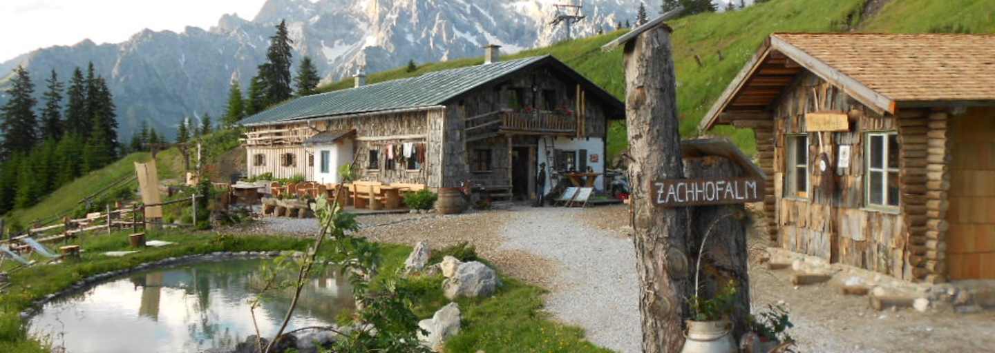 Die urige Zachhofalm liegt oberhalb von Dienten mit direktem Blick auf das Hochkönigmassiv. Vom Parkplatz der Talstation zweier Sessellifte wandert man entweder auf dem Forstweg oder auf dem Wald- und Wiesenweg Nr. 64 zur Alm. Heidi und Isabella bewirtschaften diese mit viel Leidenschaft und verköstigen ihre Gäste mit herzhaften Schmankerln, deren Zutaten im eigenen Kräutergarten gedeihen bzw. der Bio-Landwirtschaft des Famillienbauernhofes entstammen. Auch ein lichtdurchfluteter Seminarraum, Kräuterworkshops und Übernachtungsmöglichkeiten stehen hier oben zur Verfügung.