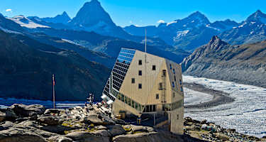 Hütten-Neubauten wie die Monte-Rosa-Hütte im Wallis oder auch die Neue Seethalerhütte am Dachstein sehen mit ihren kristallinen Formen und Aluminiumfassaden eher aus wie Raumschiffe als klassische Hütten. Das gefällt nicht allen, doch ihre Gestaltung ist nicht willkürlich: Um unter den sich verändernden klimatischen Rahmenbedingungen in den Alpen bestehen zu können, muss die „Hütte der Zukunft“ energieautark, widerstandsfähig und kostenoptimiert sein. Vor zwanzig Jahren hat die neue Monte-Rosa-Hütte Standards gesetzt, doch was kommt als nächstes?
