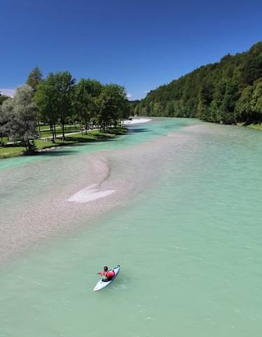 Kajak- und Kanufahrer finden hier einen wirklich wunderschönen Fluss vor, der sich auf weiten Strecken noch sehr natürlich entfalten darf. Dabei zeigt sich das Wasser bei Schönwetter in einer faszinierend türkisen Farbe, die einen schönen Kontrast zu den weißen Schotterbänken darstellt.
