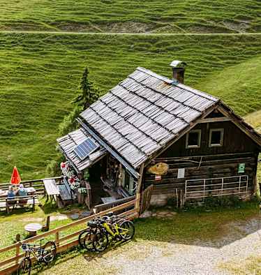 Auch auf der Nordseite gibt es neben der Technendorfer Alm noch so eine schöne Almhütte, die zur Einkehr einlädt: Die Alm hinterm Brunn. Der Zustieg erfolgt von Neusach am Weißensee und ist in rund einer Stunde leicht schaffen.