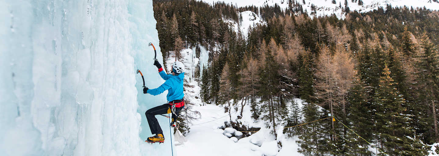 Klettern an gefrorenen Wasserfällen ist kein alltägliches Outdoor-Abenteuer – wer sich daran wagen möchte, benötigt ein ganz spezielles Equipment.