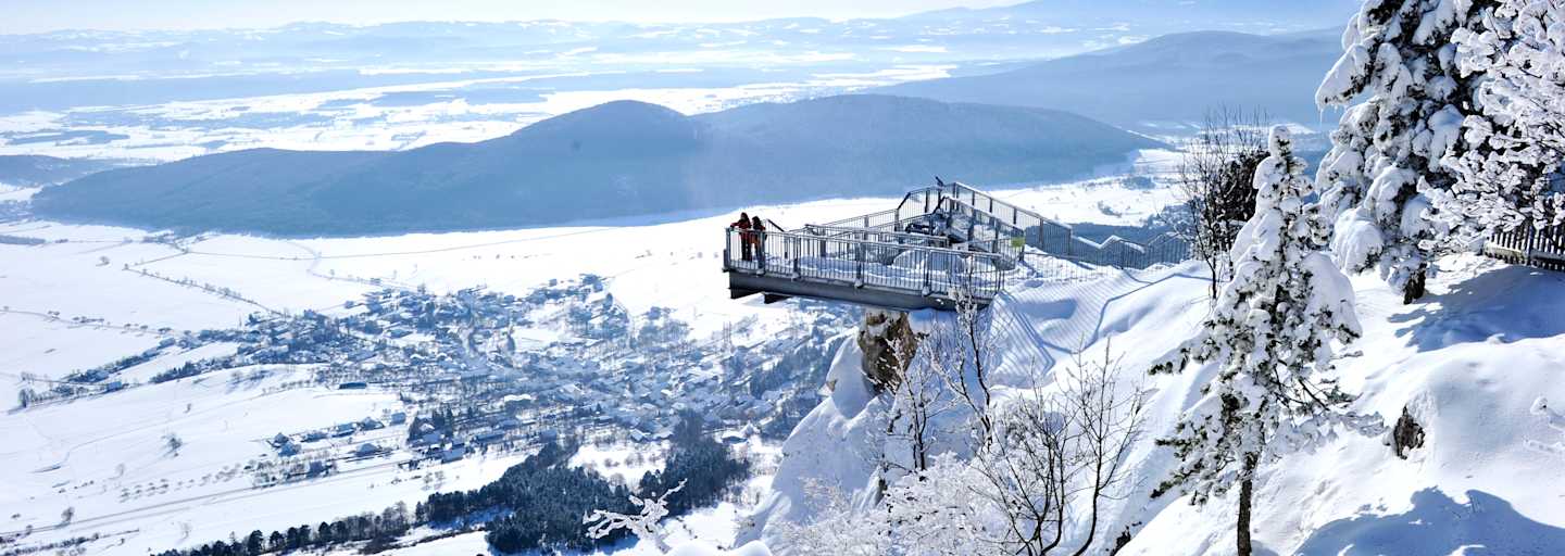 Diese familientaugliche winterliche Rundwanderung im Naturpark Hohe Wand lohnt sich vor allem bei Inversionswetterlage: Im Tal bildet sich ein Kaltluftsee, weiter oben ist es angenehm warm und sonnig, und die Bergspitzen blicken unterhalb des Skywalks (siehe Titelbild) wie kleine Inseln aus dem Nebel. Viele Tiere im Naturpark freuen sich auch im Winter über Besuch – zum Beispiel Steinböcke, Lamas und Alpakas.