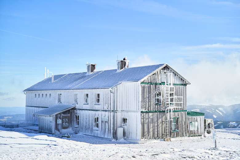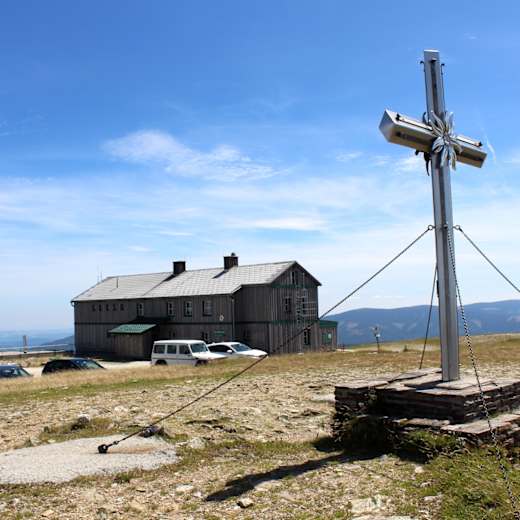 Von Spital am Semmering fährt man über Steinhaus und Rettenegg bis auf die Passhöhe, den Pfaffensattel. Hier parkt man beim (geschlossenen) Gasthaus. Über den „02“ Ost-West-Weitwanderweg geht es jetzt anfangs noch durch den Wald bis zur Baumgrenze und in weiterer Folge „begleitet“ von Heidelbeersträuchern direkt zur Hütte.