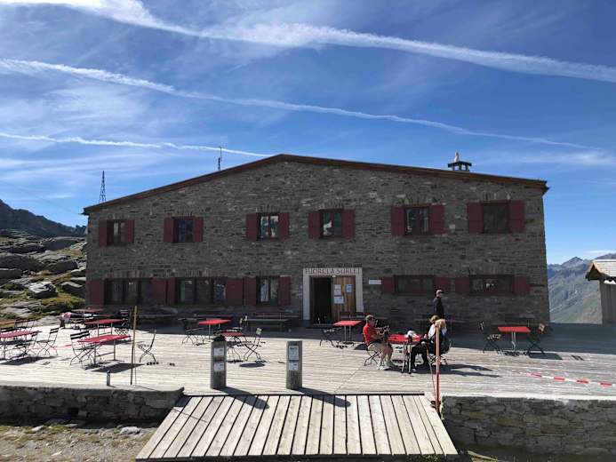 Wanderer und Bergsteiger kehren hier auf der Fuorcla Surlej auf dem Weg von der Mittelstation Murtèl weiter in Richtung Süden gerne ein.