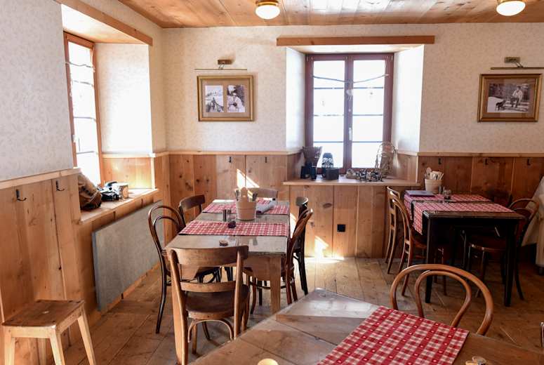 Im Inneren des kleinen Bergrestaurants AlpenblickFoto: Saastal Tourismus AG/Alpenblick