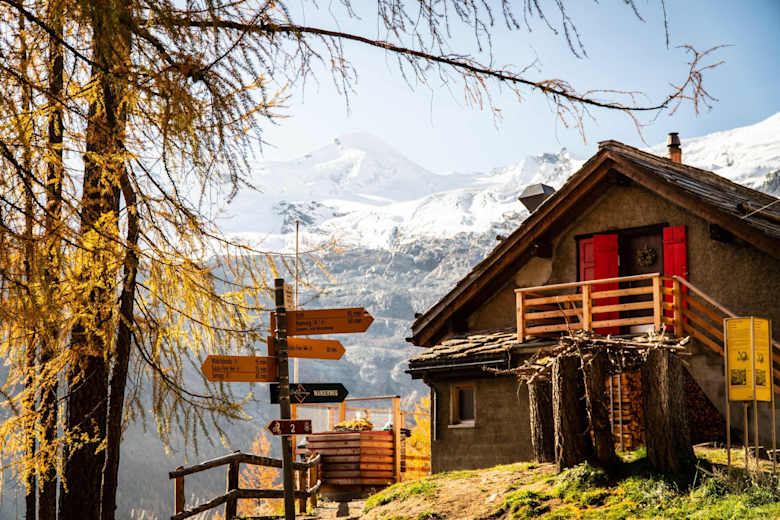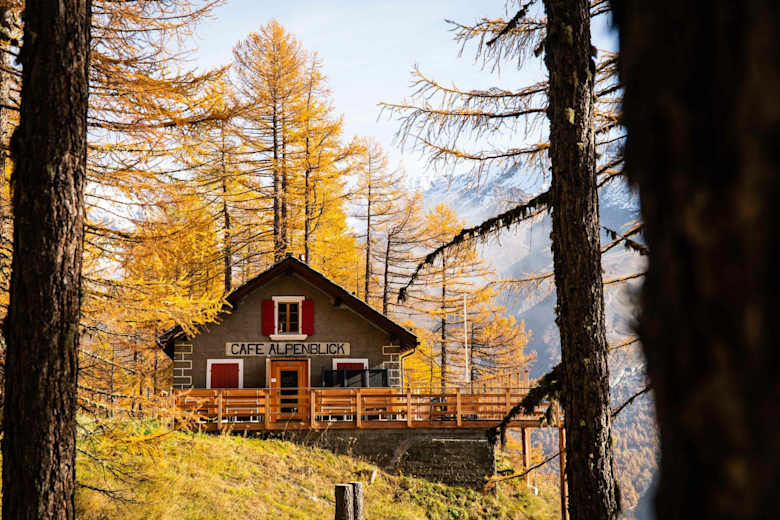 Im Herbst besonders schön - das Bergrestaurant AlpenblickFoto: Saastal Tourismus AG