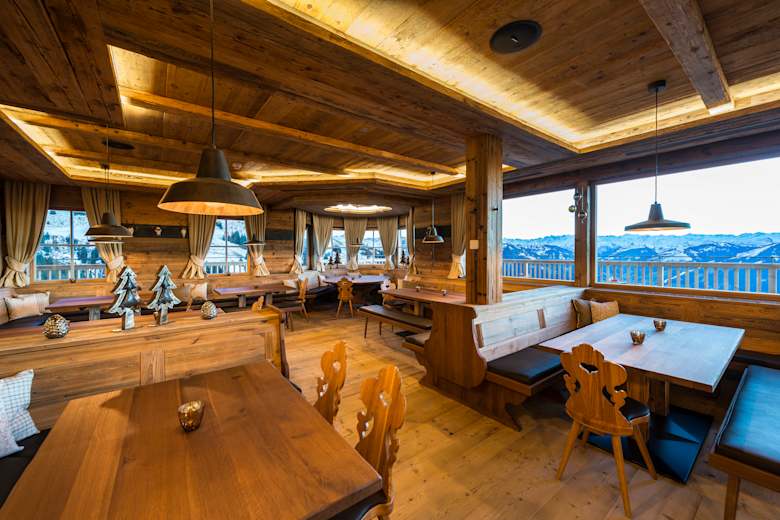 Die im Jahre 2015 neu errichtete Bichlalm thront auf einer Höhe von 1.600 m über Kitzbühel und bietet einen herrlichen Blick in die Tiroler Bergwelt. Der exklusiv und sehr gemütlich eingerichtete Berggasthof befindet sich direkt an der Skipiste, am Wanderweg und am Radweg. Alles ist hier also möglich.