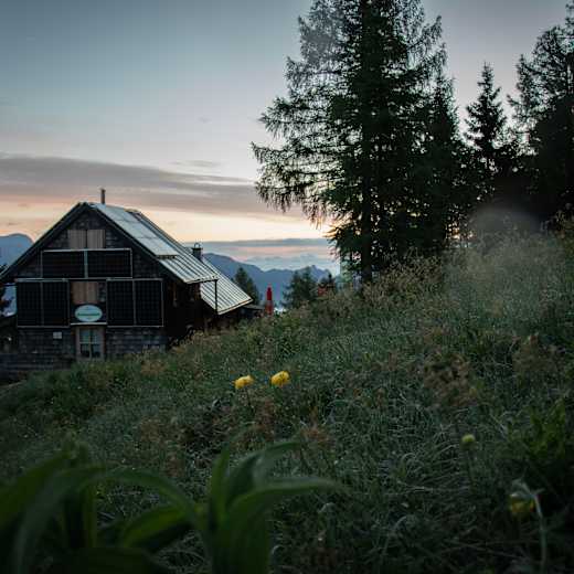 Auch Mountainbiker können bist knapp unterhalb der Hütte auf der Niedergadenstraße fahren und gehen die letzten Meter zu Fuß. Im Winter sperrt die Hütte auf Anfrage und ab 10 Personen auf.