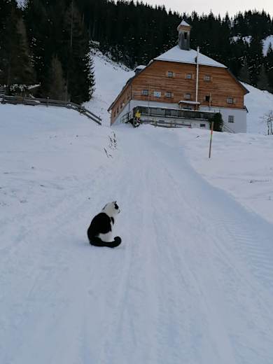 Der Kater auf der Rodelbahn vor der Bochumer Hütte. Foto: Ilona Hultsch, Bochumer Hütte, Kelchalm