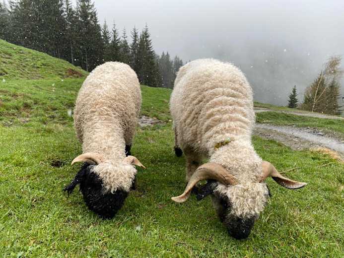 Auf der Kelchalm verbringen auch viele Tiere, wie auch diese zwei Schafe, den Sommer. Foto: Ilona Hultsch, Bochumer Hütte, Kelchalm
