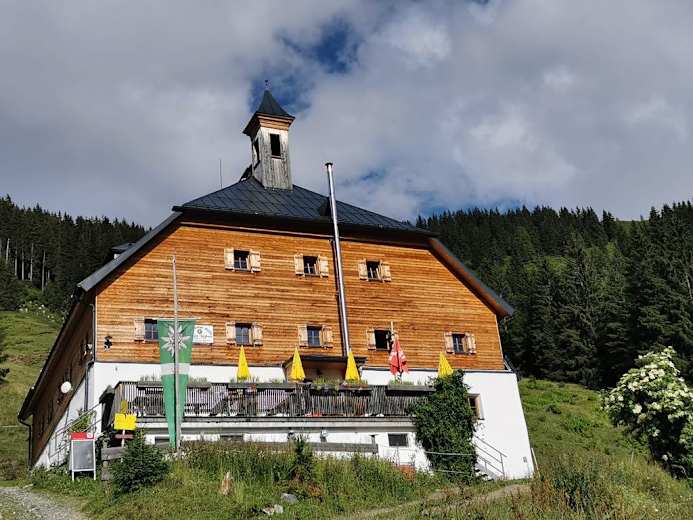 Die nächstgelegenen Hütten sind die Hochwildalmhütte (1.557 m, 4 h) und die Bürglhütte (1.699 m, 3:45 h).