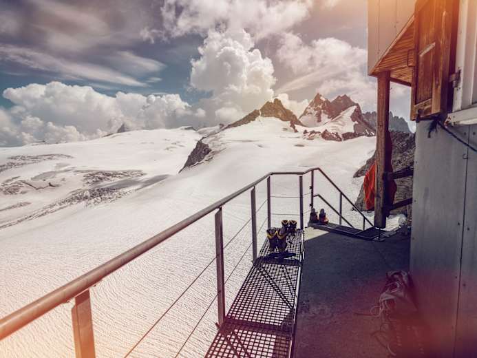 Die Bertolhütte ist eine Hütte des Schweizer Alpen Clubs im Kanton Wallis. Wie ein Adlerhorst thront die hochalpine Hütte spektakulär in 3.311 m Höhe auf einem Felssporn über Arolla im Val d’Hérens und überragt den Mont-Miné- und den Bertolgletscher.