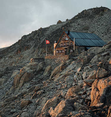 Die Cabane de la Dent Blanche (Cabane Rossier) liegt auf einer Höhe von 3.507 m, gut getarnt und eng an den Felsen geschmiegt am Fuße des Westgrates der Wandfluelücke (3.700 m). Sie ist eine der höchstgelegensten SAC Hütten der Schweiz und im Besitz der Sektion Jaman im Kanton Valais. Der Ausgangspunkt für einen der längsten Hüttenzustiege im Land erfolgt von Férpècle und man muss sich die warme Mahlzeit auf der Cabane de la Dent Blanche wahrlich erarbeiten.
