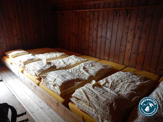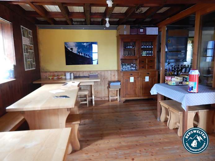 Winterraum mit 14 Schlafplätzen und kleiner Gasküche, WC und Dusche nicht im Betrieb. Essen muss mitgebracht werden, Getränke sind vorhanden.
