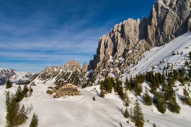Das 1945 errichtete Haus diente ursprünglich den Gebirgs-Füsilieren als Trainingslager. Statt auf Soldaten trifft man heute im Sommer auf Wanderer, Kletterer und Mountainbiker im Winter auf Schneeschuhwanderer, Skitourengeher und Schlittler. Kein Wunder, denn das Chalet du Soldat ist die perfekte Basis für zahlreiche Outdooraktivitäten.