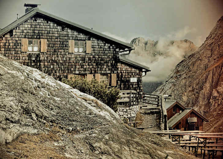 Was für ein Postkartenidyll: Rund 250 m unterhalb der Coburger Hütte (1.920 m) liegt glasklar der Seebensee, in dem sich das Zugspitzmassiv spiegelt, welches gegenüber der Hütte thront. Dieser Anblick ist freilich nur einer von vielen Günden, den 1901 auf einem Sattel in der Mieminger Kette in Tirol eröffneten Stützpunkt zu Fuß oder mit dem Mountainbike zu besuchen. Umgeben ist er von den Gipfeln Sonnenspitze, Drachenkopf, Marienbergspitze, Grünstein, Tajakopf und den Griesspitzen.