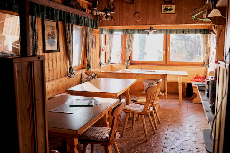 Gepflegte Stüberl, nette Übernachtungsmöglichkeiten. In der Hütte Bedienung, auf den beiden Terrassen Selbstbedienung. Die Hütte kann auch für Feiern gemietet werden. Übernachtung mit Hunden nach Rücksprache.