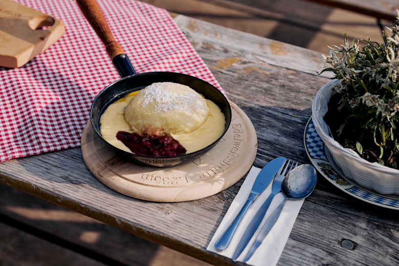 Germknödel mit Vanillesauce und Preiselbeeren auf der EdelweisshütteFoto: ASA12
