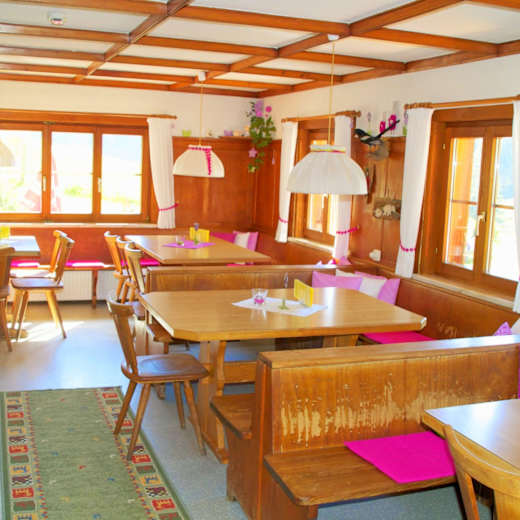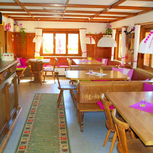Gekocht wird ausschließlich mit Produkten aus der Region, das Bier (zwei Sorten) kommt vom Fass, Kinder können im ebenen und überschaubaren Hüttenumfeld gefahrlos herumtoben. Zudem gibt es einen großzügig angelegten Abenteuerspielplatz. Ein kleiner natürlicher Badeteich wurde für die Sommersaison 2016 fertiggestellt. Im Inneren der Hütte finden knapp 50 Gäste Platz, auf der weitläufigen Terrasse bis zu 150.