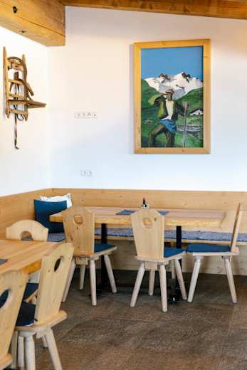 Die Gaststube der Enzianhütte bei HochrumFoto: Elias Holzknecht