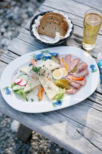 Die Familie Kircher aus Arzl, die auch die Möslalm im Karwendel bewirtschaftet, verwöhnt ihre Gäste mit traditioneller Tiroler Küche und verwendet Produkte, die zum Teil aus der eigenen Landwirtschaft stammen.