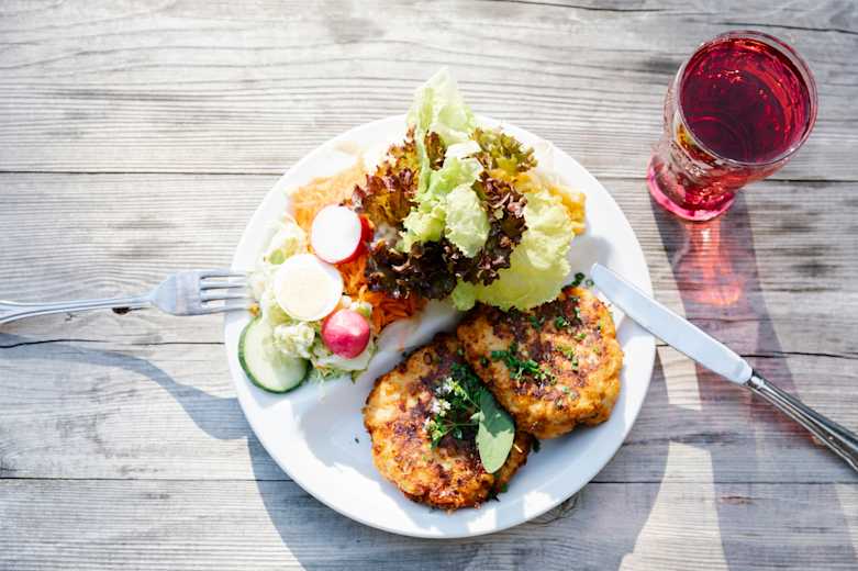 Speckknödel mit Salat auf der Enzianhütte bei HochrumFoto: Elias Holzknecht