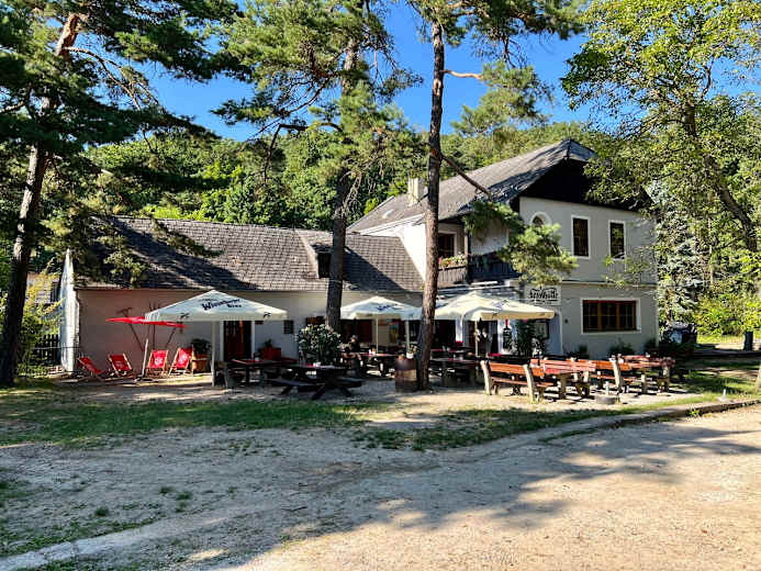 Die Fesslhütte liegt ideal im Schatten der Bäume direkt am Welterbe-Steig Wachau.Foto: Fesslhütte
