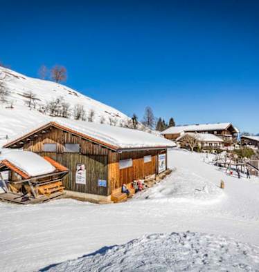 Die aus Bachsteinen und Holz erbaute Alm liegt auf schönen Wiesen direkt am Fuße des „Koasa“ - des Kaisergebirges und gibt einerseits den Blick zu den Felswänden des Wilden Kaisers mit seiner höchsten Erhebung, dem Ellmauer Halt (2.344 m), und andererseits zu den sanften Hängen des Feldbergs (1.813 m) frei.