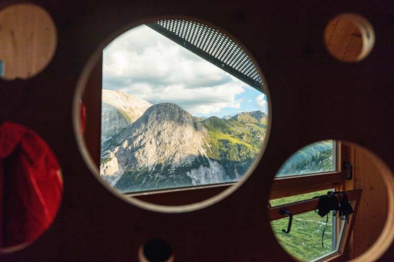 Die Architektur der Franz-Fischer-Hütte zeichnet sich durch viel Holz, helle Räume und die runden Elemente aus.Foto: Ramona Waldner / Red Bull Media House Publishing