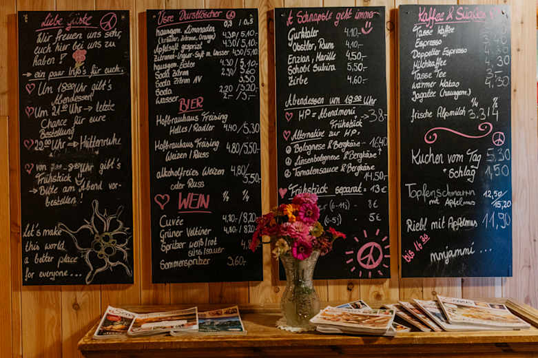Die Speiße- und Getränkekarte der Freiburger Hütte.Foto: Elias Holzknecht