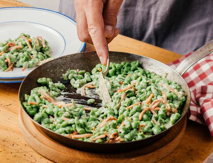 Spinatspätzle auf der Frido-Kordon-HütteFoto: Eisenhut & Mayer / Bergwelten Magazin