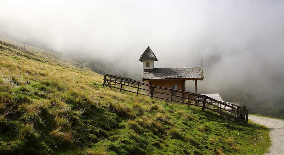 Kurz vor der Alm steht ein Wegkreuz und eine schöne Kapelle, die zu einer kurzen Andacht einlädt.