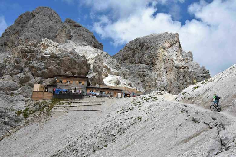 Man erreicht die Hütte auch über Tiers (Südtirol) durch das Tschamintal und vorbei an der Grasleitenhütte.