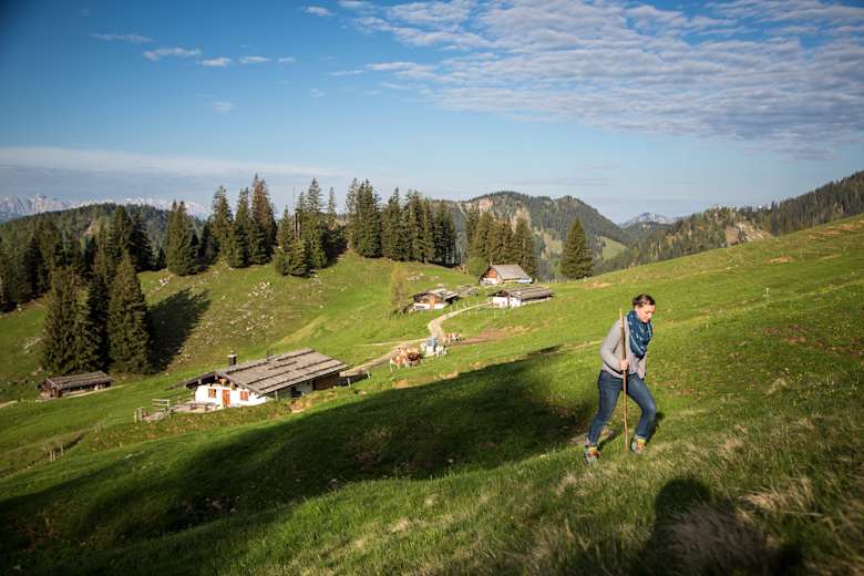 Die Kühe halten die Weiden von Büschen und Bäumen frei. Foto: Ruhpolding Tourismus GmbH Bildergalerie (7) Karte ansehen