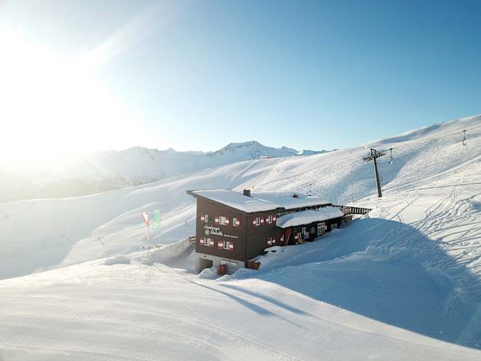 Man erreicht die Hütte ganz einfach, wenn man den Sechsersessellift auf die Schlossalm nimmt und anschließend die blaue Piste 5a hinunter fährt.