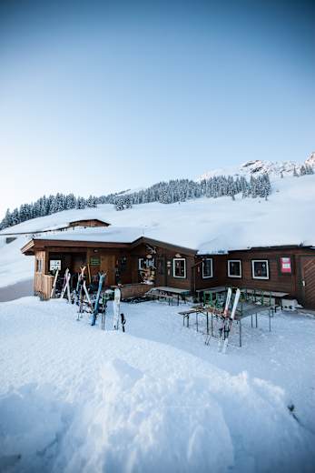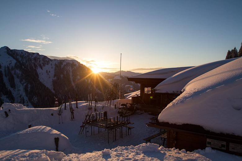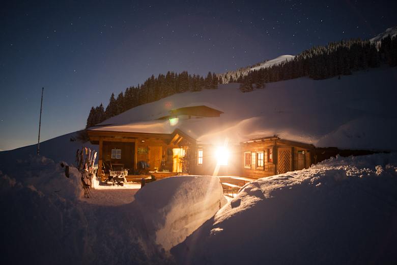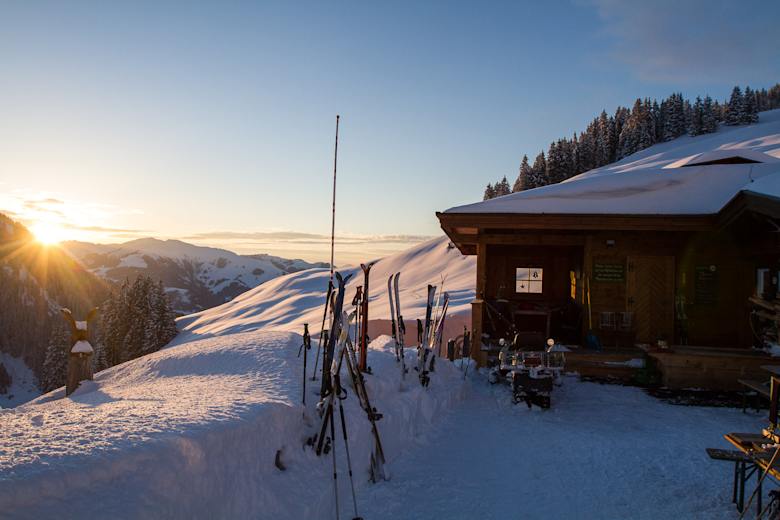 Im Winter sind Schneeschuhwanderer und Skitourengeher gern gesehene Gäste auf der Alm, hoch über Aurach bei Kitzbühel. Allerdings ist die Hütte dann meist nur an den Wochenenden bei passendem Wetter geöffnet.