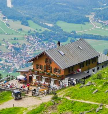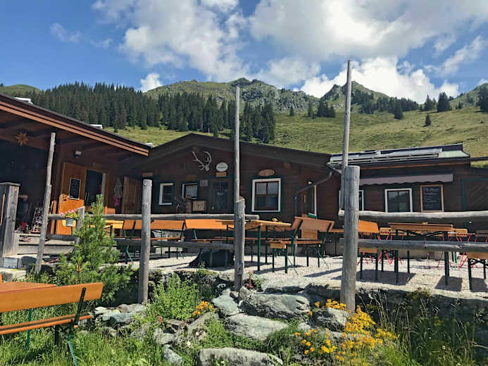 Die Terrasse der Hochwildalmhütte Foto: Hochwildalmhütte