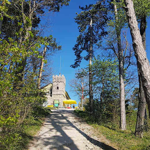 Vom Wassergspreng (360 m), einer Rotte, die zur Gemeinde Hinterbrühl bei Mödling gehört, geht es auf einem leicht zu begehenden Forstweg auf den Höllenstein und das Höllensteinhaus.