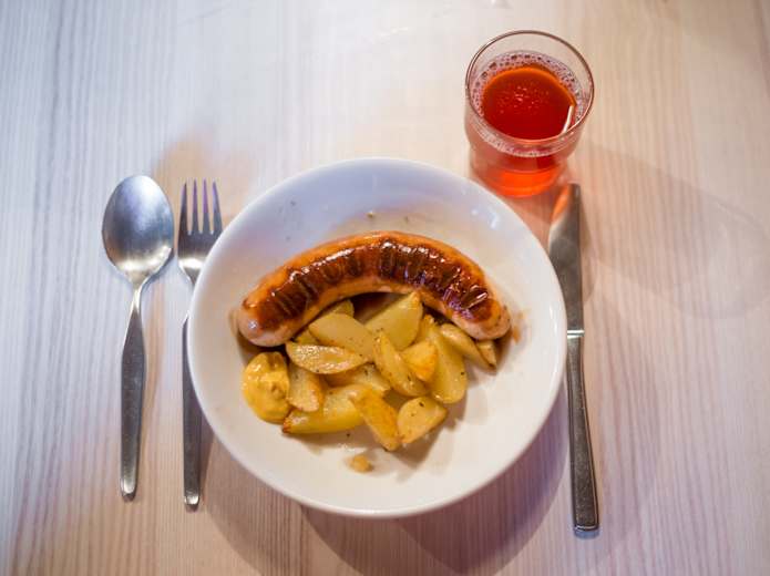 Die St. Galler Bratwurst darf auch auf dem Menüplan der Hundsteinhütte nicht fehlen.Foto: Frederik van den Berg, Bergwelten Magazin Schweiz 03/2017