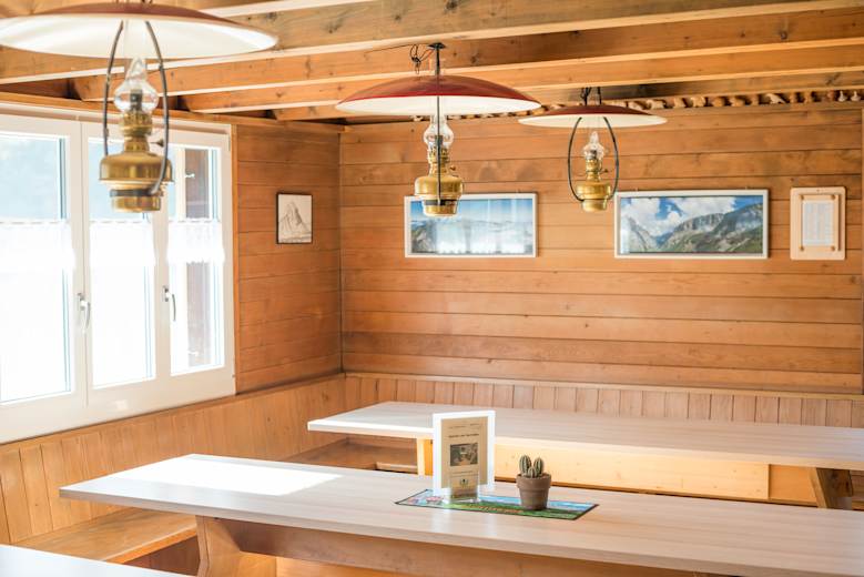 Der seit dem Umbau aufgefrischte Speiseraum ist licht und gemütlich.Foto: Frederik van den Berg, Bergwelten Magazin Schweiz 03/2017