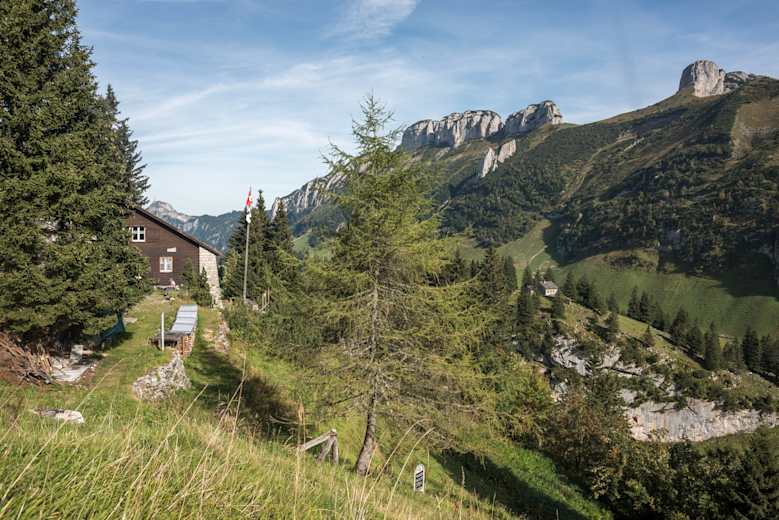 Nach ein paar Minuten Aufstieg vom Fälensee ist die Hundsteinhütte erreicht.Foto: Frederik van den Berg, Bergwelten Magazin Schweiz 03/2017