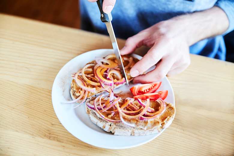 Nach dem Anstieg schmeckt das Grammelschmalzbrot mit Zwiebeln am Karl Ludwig Haus besonders gut.Foto: Sophie Kirchner, Bergwelten Magazin 05/2018