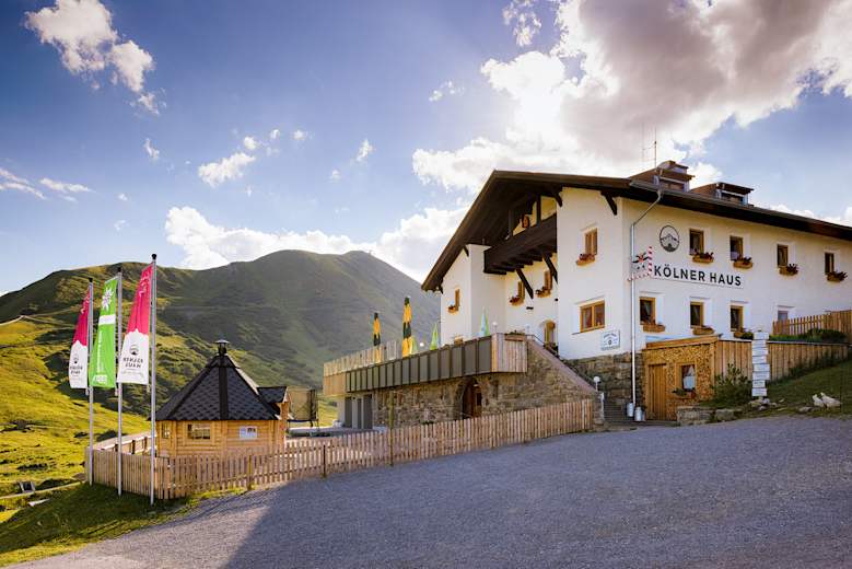 Im Winter wie im Sommer ist das Kölner Haus (1.965 m) dank seiner sehr zentralen Lage inmitten der Dreitausender Hexenkopf und Furgler in der Komperdellalpe Anlaufstation für Bergsportler jeden Alters.