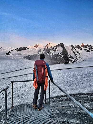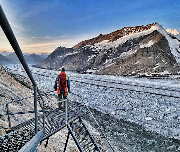 Ausblick von der Treppe auf den Großen AletschgletscherFoto: Rebecca Gresch und Stefan Gafner