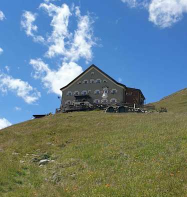 Die Hütte – der Bau wurde 1938 begonnen und Anfang der 1950er-Jahre fertiggestellt – ist sehr geräumig und bietet insgesamt weit über 100 Lager (sowohl Zimmer als auch Lager). Der Winterraum mit rund einem Dutzend Matratzenlagern bleibt in der nicht bewirtschafteten Zeit offen.