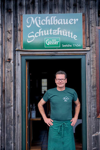 Hüttenwirt Robert Höllmüller vor der Michlbauerhütte.Foto: ASA12