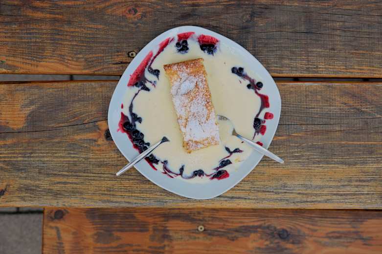 Topfenstrudel mit Vanillesauce auf der MichlbauerhütteFoto: ASA12
