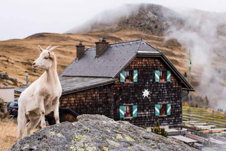 Die Millstätter Hütte mit tierischer BegleitungFoto: Marco Rossi, Bergwelten Magazin
