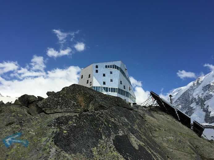 Blick von unten auf die Monte Rosa HütteFoto: Claudia Timm